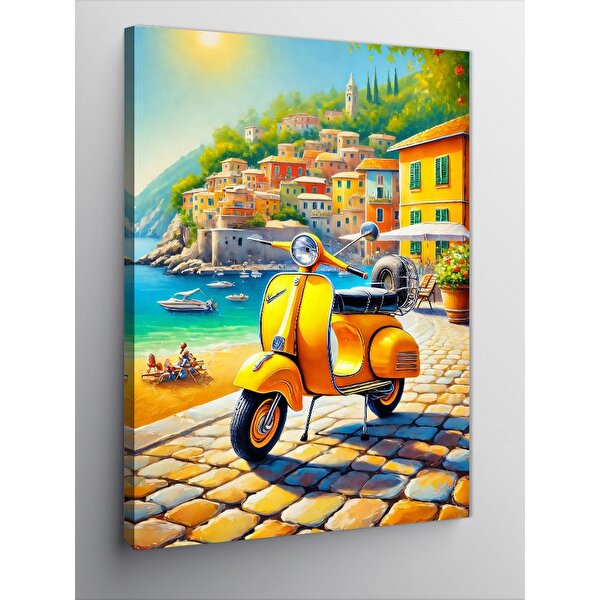 Tablomega Kanvas Tablo Sarı Motosiklet Ve Akdeniz Sokakları 70x100 cm
