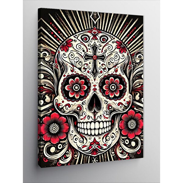 Tablomega Kanvas Tablo Şeker Kafatası Ve Çiçekler 70x100 cm