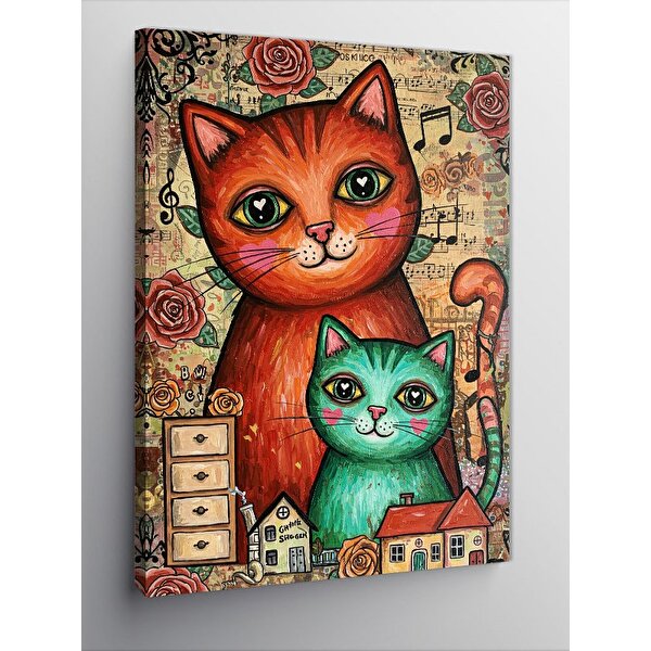Tablomega Kanvas Tablo Sevimli Renkli Kediler 100x140 cm