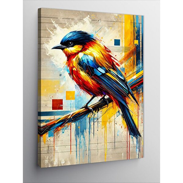 Tablomega Kanvas Tablo Suluboya Renkli Kuş Tasarımı 50x70 cm