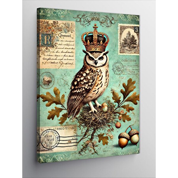 Tablomega Kanvas Tablo Taçlı Baykuş Ve Vintage Harita 100x140 cm