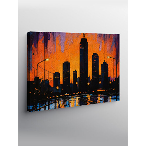Tablomega Kanvas Tablo Turuncu Şehir Silüeti İllüstrasyonu 50x70 cm