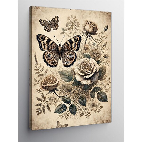 Tablomega Kanvas Tablo Vintage Çiçek Ve Kelebek 100x140 cm