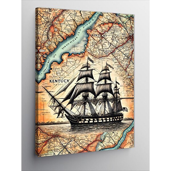 Tablomega Kanvas Tablo Yelkenli Gemi Ve Harita 70x100 cm