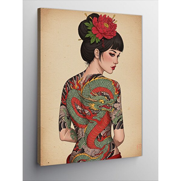 Tablomega Kanvas Tablo Yılan Dövmeli Kadın Ve Çiçek 100x140 cm