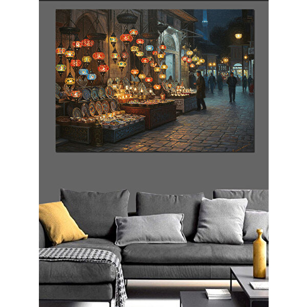 Kapalıçarşıda Renkli Lamba Caddesi Dekoratif Kanvas - Mdf Ahşap Tablo