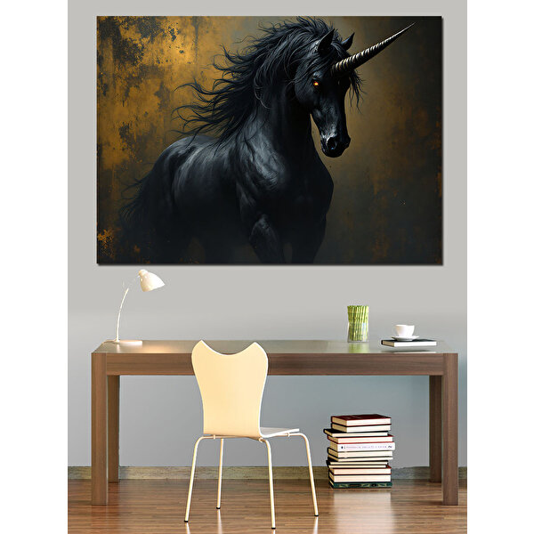 Tablomega Kara Büyülü Siyah At Dekoratif Kanvas - Mdf Ahşap Tablo 25x35 cm