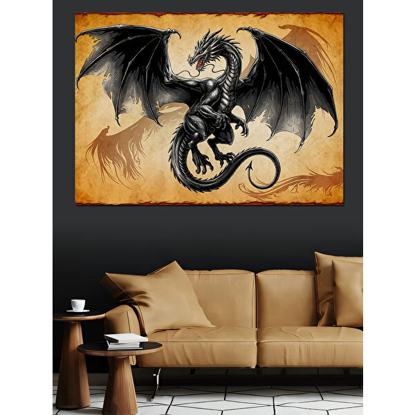 Tablomega Karanlık Ejderha Sanatı Dekoratif Kanvas - Mdf Ahşap Tablo 100x140 cm