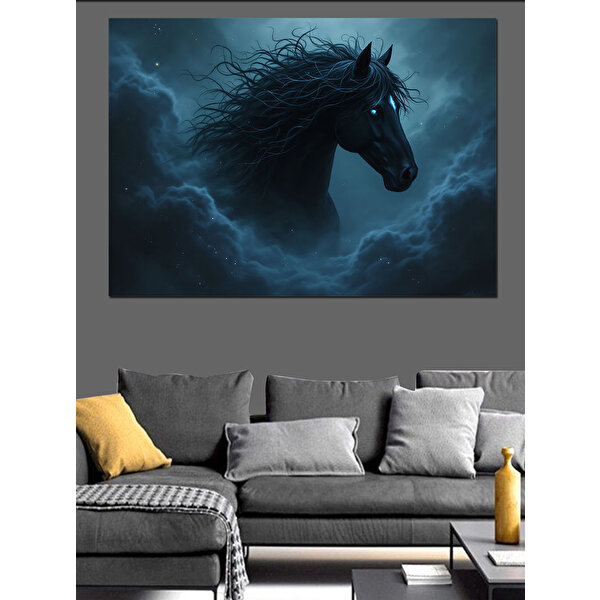 Tablomega Karanlıkta Gizemli At Dekoratif Kanvas - Mdf Ahşap Tablo 100x140 cm