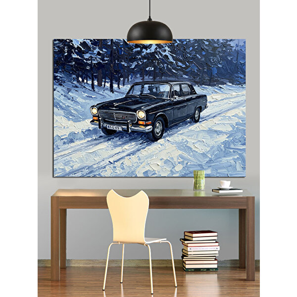Karlı Siyah Araba Dekoratif Kanvas - Mdf Ahşap Tablo