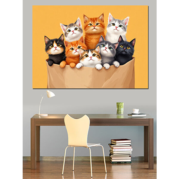 Tablomega Karton Kutuda Kediler Dekoratif Kanvas - Mdf Ahşap Tablo 35x50 cm