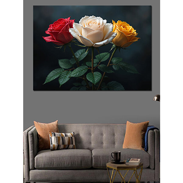 Tablomega Kırmızı Beyaz Gül Buketi Dekoratif Kanvas - Mdf Ahşap Tablo 50x70 cm
