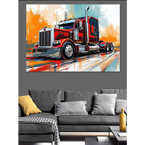 Kırmızı Dev Tır Dekoratif Kanvas - Mdf Ahşap Tablo