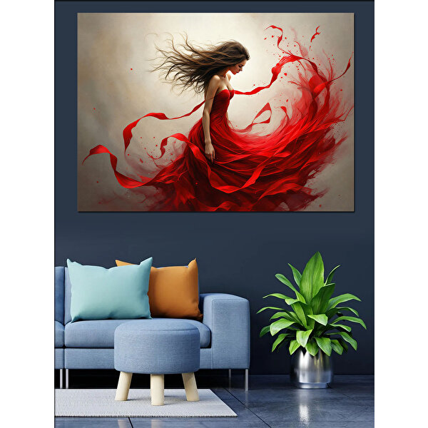 Kırmızı Elbiseli Dansçı Kadın Dekoratif Kanvas - Mdf Ahşap Tablo