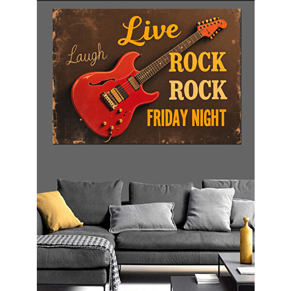 Kırmızı Gitarlı Rock Posteri Dekoratif Kanvas - Mdf Ahşap Tablo