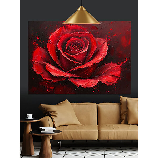 Tablomega Kırmızı Gül Tablo Dekoratif Kanvas - Mdf Ahşap Tablo 70x100 cm