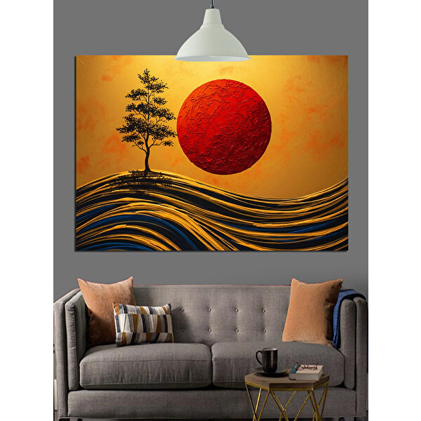 Tablomega Kırmızı Güneş Ve Ağaç Dekoratif Kanvas - Mdf Ahşap Tablo 50x70 cm