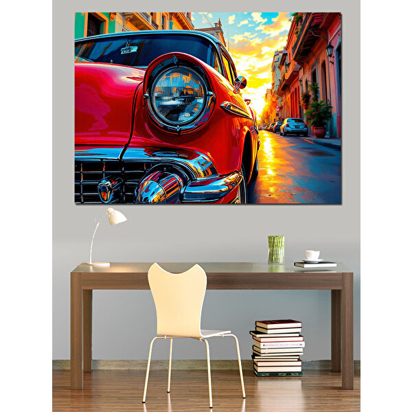 Kırmızı Klasik Araba Dekoratif Kanvas - Mdf Ahşap Tablo