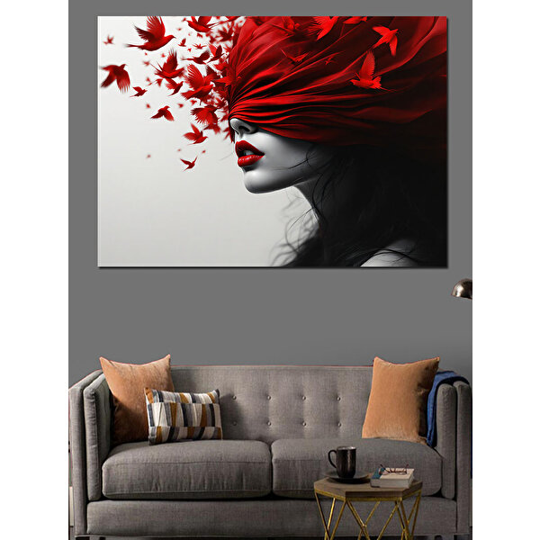 Kırmızı Maskeli Kadın Dekoratif Kanvas - Mdf Ahşap Tablo