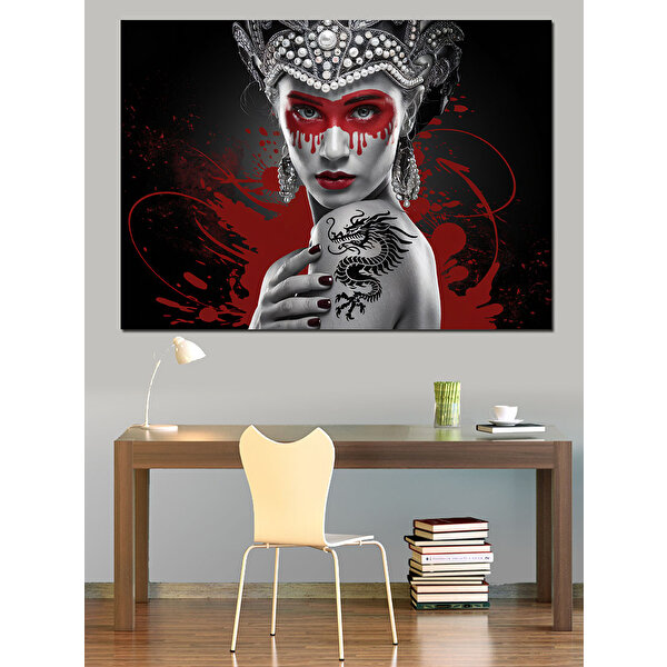 Kırmızı Maskeli Kadın Dekoratif Kanvas - Mdf Ahşap Tablo