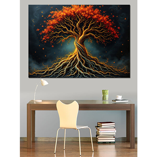 Tablomega Kırmızı Yapraklı Kök Ağaç Dekoratif Kanvas - Mdf Ahşap Tablo 70x100 cm