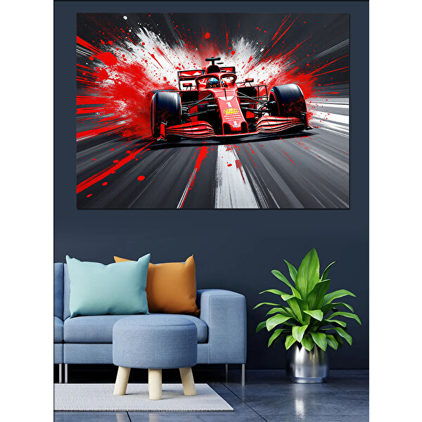 Kırmızı Yarış Arabası Patlaması Dekoratif Kanvas - Mdf Ahşap Tablo