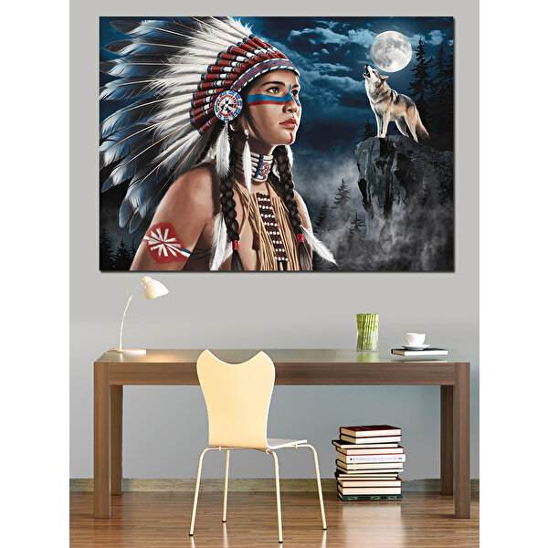 Tablomega Kızılderili Kadın Ve Kurt Dekoratif Kanvas - Mdf Ahşap Tablo 50x70 cm