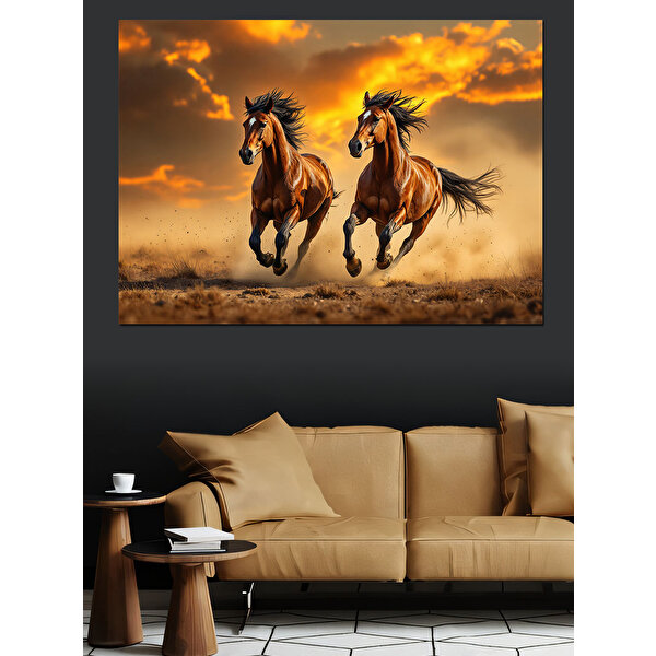 Koşan Vahşi Atlar Dekoratif Kanvas - Mdf Ahşap Tablo