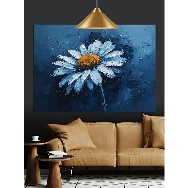 Tablomega Koyu Zeminde Beyaz Papatya Dekoratif Kanvas - Mdf Ahşap Tablo 35x50 cm