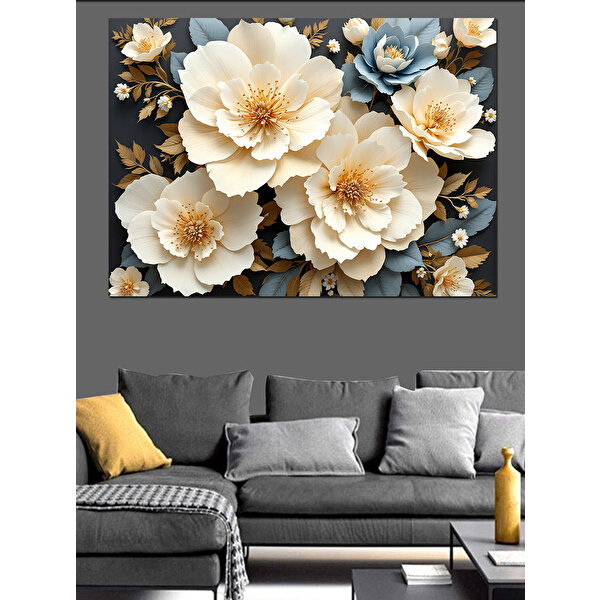 Tablomega Krem Renkli Gül Aranjmanı Dekoratif Kanvas - Mdf Ahşap Tablo 70x100 cm