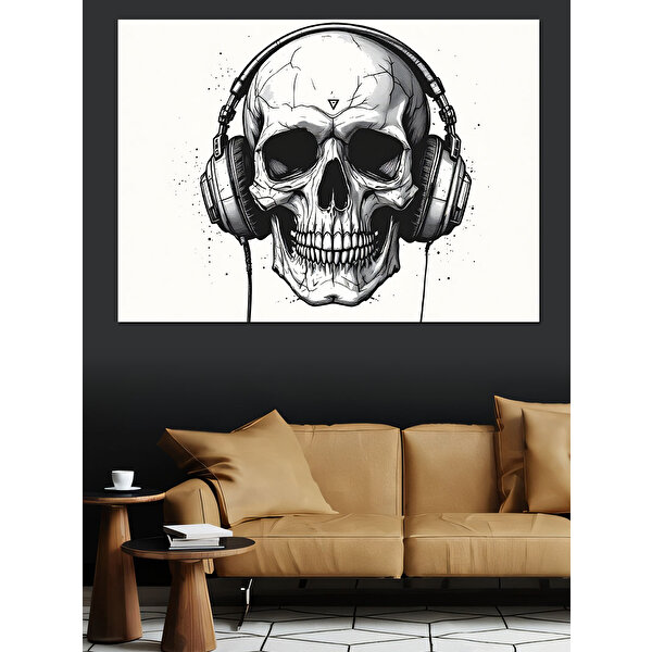 Kulaklıklı Kuru Kafa Portresi Dekoratif Kanvas - Mdf Ahşap Tablo