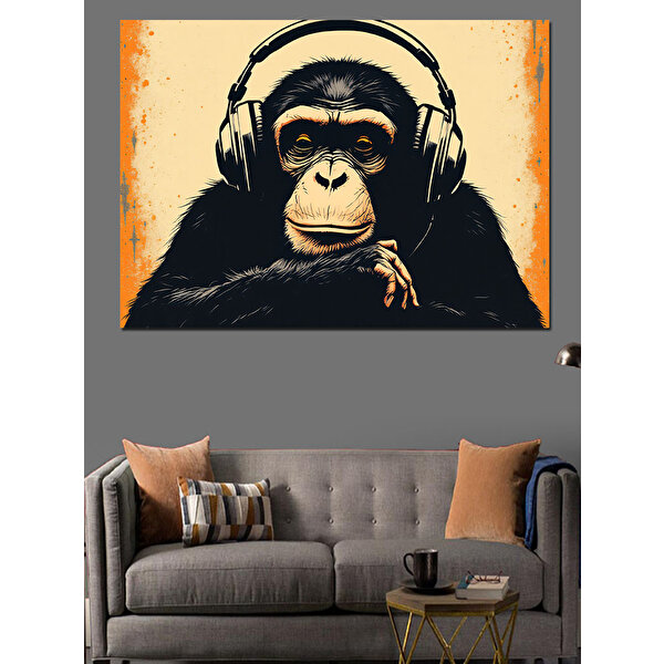 Kulaklıklı Müzik Dinleyen Maymun Dekoratif Kanvas - Mdf Ahşap Tablo