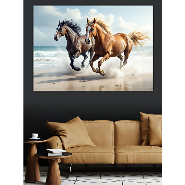 Kumsalda Koşan Atlar Dekoratif Kanvas - Mdf Ahşap Tablo