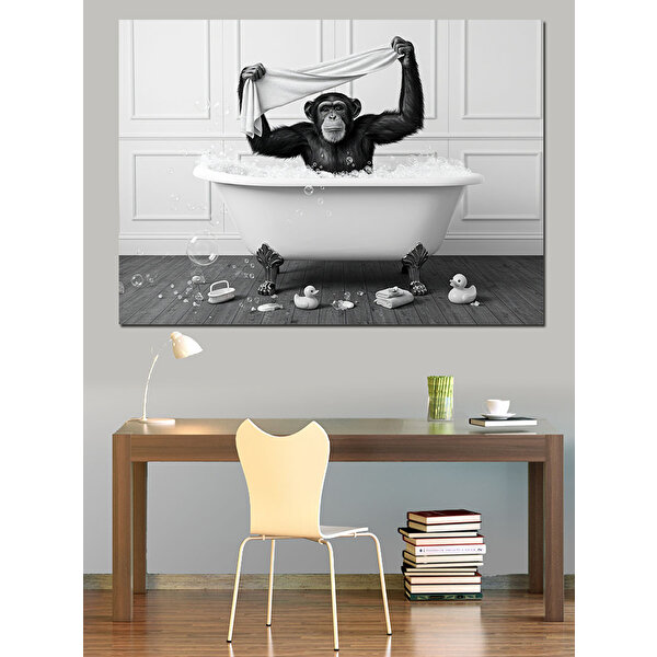 Küvette Oturan Maymun Dekoratif Kanvas - Mdf Ahşap Tablo