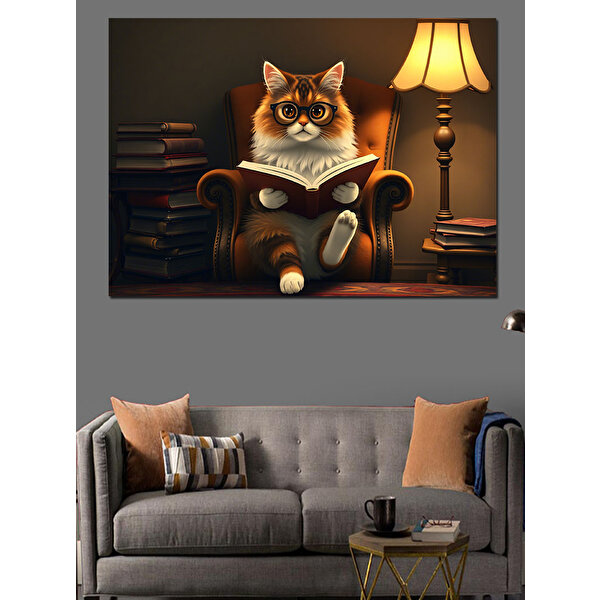 Lambalı Koltukta Oturan Kedi Dekoratif Kanvas - Mdf Ahşap Tablo