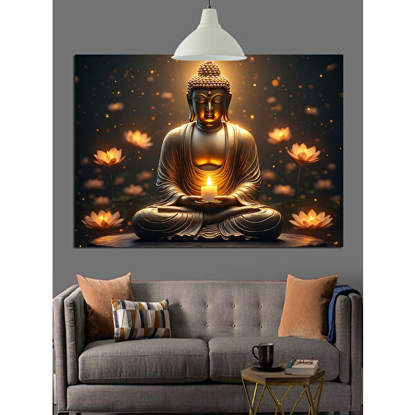 Tablomega Lotus Çiçekleriyle Buda Heykeli Dekoratif Kanvas - Mdf Ahşap Tablo 70x100 cm