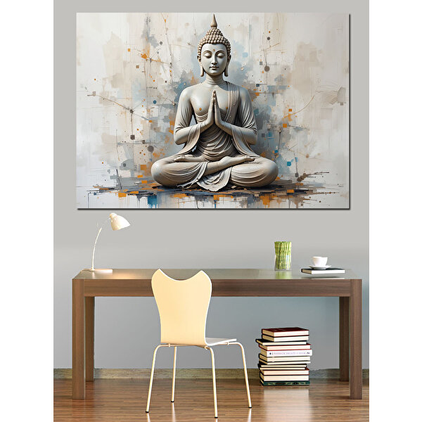 Tablomega Lotus Pozunda Oturan Buda Dekoratif Kanvas - Mdf Ahşap Tablo 50x70 cm