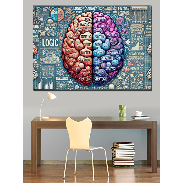 Tablomega Mantık Ve Duygu Beyni Dekoratif Kanvas - Mdf Ahşap Tablo 100x140 cm