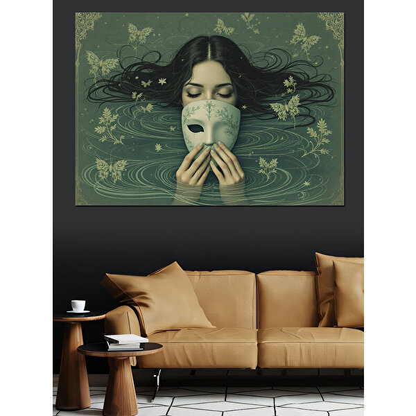 Maske Tutan Siyah Saçlı Kadın Dekoratif Kanvas - Mdf Ahşap Tablo