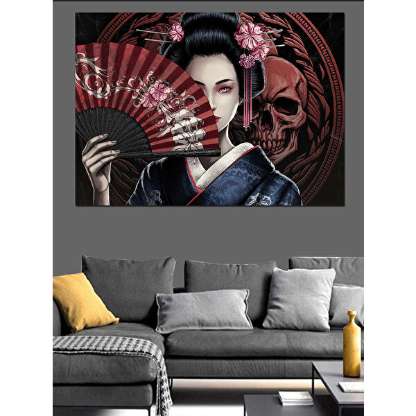 Maskeli Kadın Geisha Dekoratif Kanvas - Mdf Ahşap Tablo