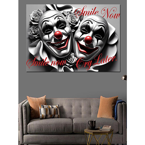 Tablomega Maskeli Palyaço İllüstrasyonu Dekoratif Kanvas - Mdf Ahşap Tablo 100x140 cm