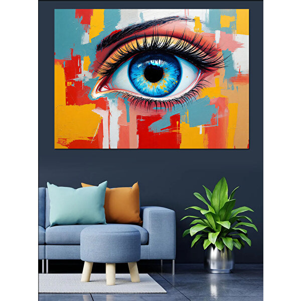 Tablomega Mavi Göz Ve Renkler Dekoratif Kanvas - Mdf Ahşap Tablo 50x70 cm