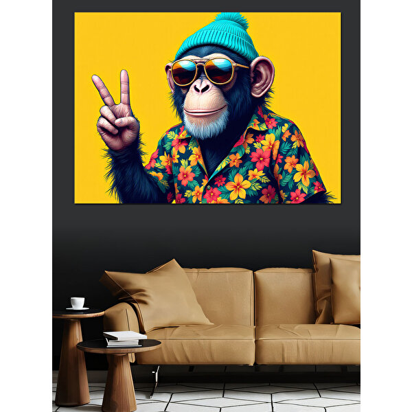 Mavi Gözlü Havalı Maymun Dekoratif Kanvas - Mdf Ahşap Tablo
