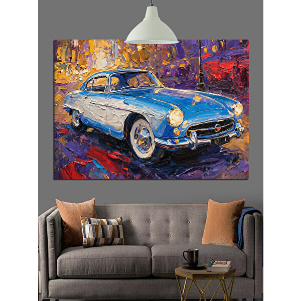 Tablomega Mavi Klasik Araba Dekoratif Kanvas - Mdf Ahşap Tablo 70x100 cm