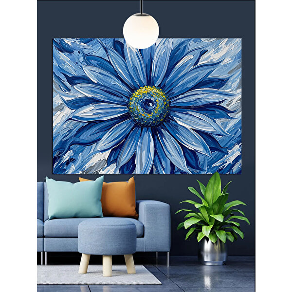 Mavi Papatya Çiçek Dekoratif Kanvas - Mdf Ahşap Tablo