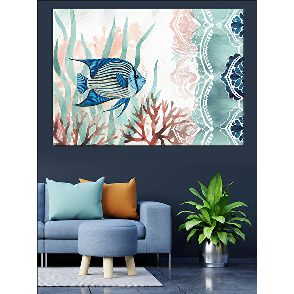Mercanlar Arasında Balık Dekoratif Kanvas - Mdf Ahşap Tablo