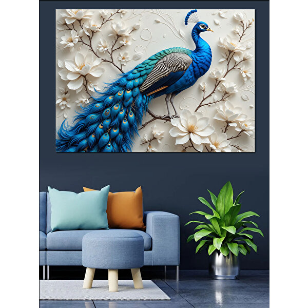 Tablomega Muhteşem Tavus Kuşu Tüyleri Dekoratif Kanvas - Mdf Ahşap Tablo 50x70 cm