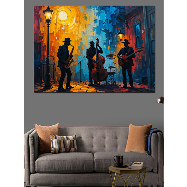 Tablomega Müzisyenler Renkli Sokak Sahnesi Dekoratif Kanvas - Mdf Ahşap Tablo 100x140 cm
