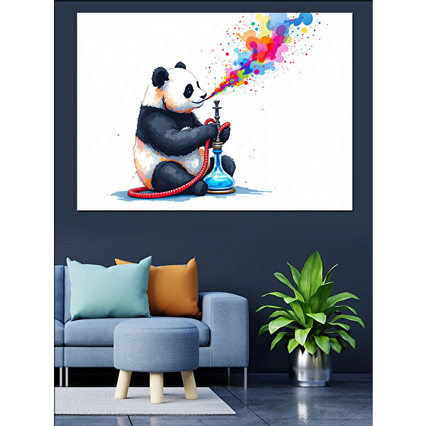 Tablomega Neon Baloncuk Üfleyen Panda Dekoratif Kanvas - Mdf Ahşap Tablo 100x140 cm