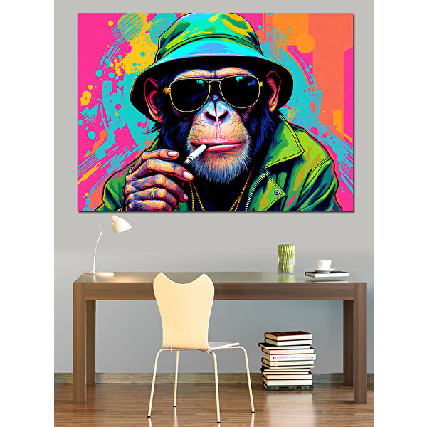 Neon Gözlü Maymun Dekoratif Kanvas - Mdf Ahşap Tablo